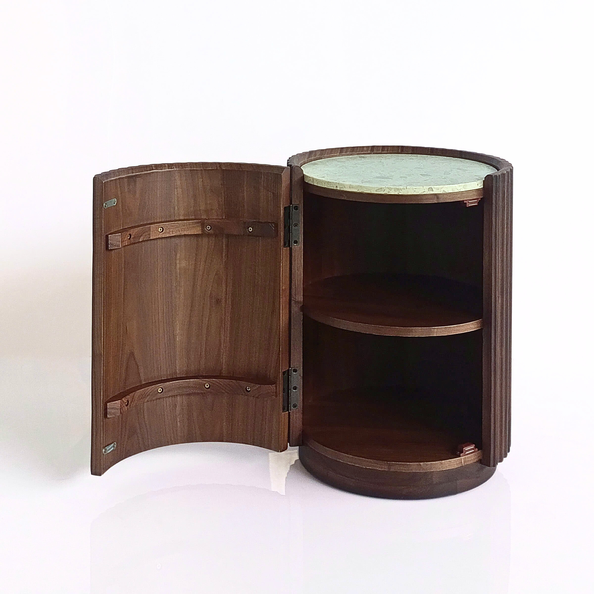 Pähklipuidust Ümmargune Abilaud/Öökapp Franz